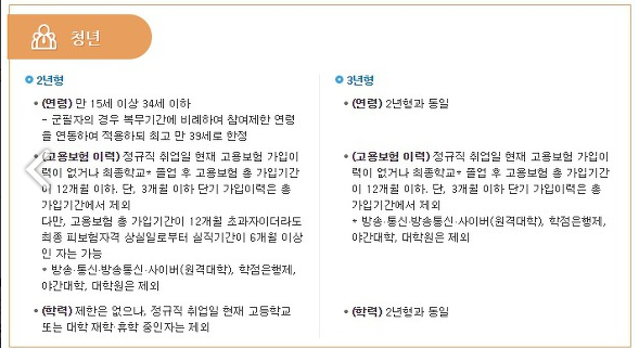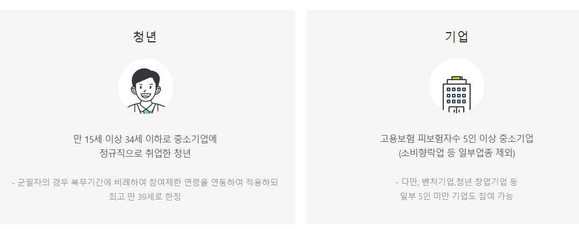 청년은 15세 이상 34세 이하로 중소/중견 기업에 정규직으로 취업해야 합니다 :)