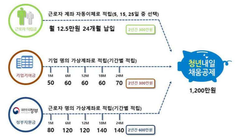 중소/중견 기업 재직자의 장기근속을 위해 정부, 기업, 근로자가 2~3년간 돈을 납입하면서 만기 시 돌려받는 제도입니다.
