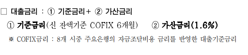 가산금리 1.6%(고정) + 신 잔액 COFIX 0.83% - (우대금리 +지원금리 1.5%) = 0.93 %...!!!!!!!
