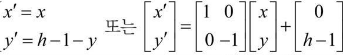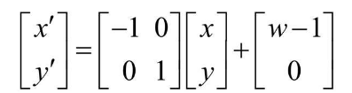 수식을 해석하자면 x축방향으로 -1배 크기를 변환한 후 x축 방향으로 w-1만큼 이동 변환과 같습니다.