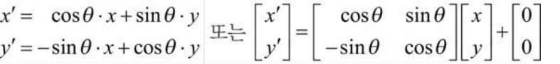 행렬식은 아래와 같습니다. 영상을 회전하려면 삼각함수를 써야 하는데, 삼각함수와 관계는