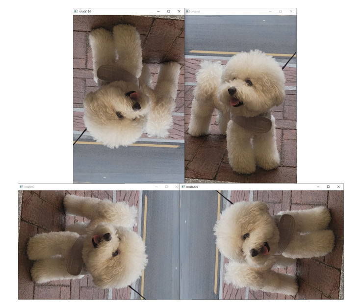 - rotateCode: cv2.ROTATE_90_CLOCKWISE : 시계방향 90도 회전