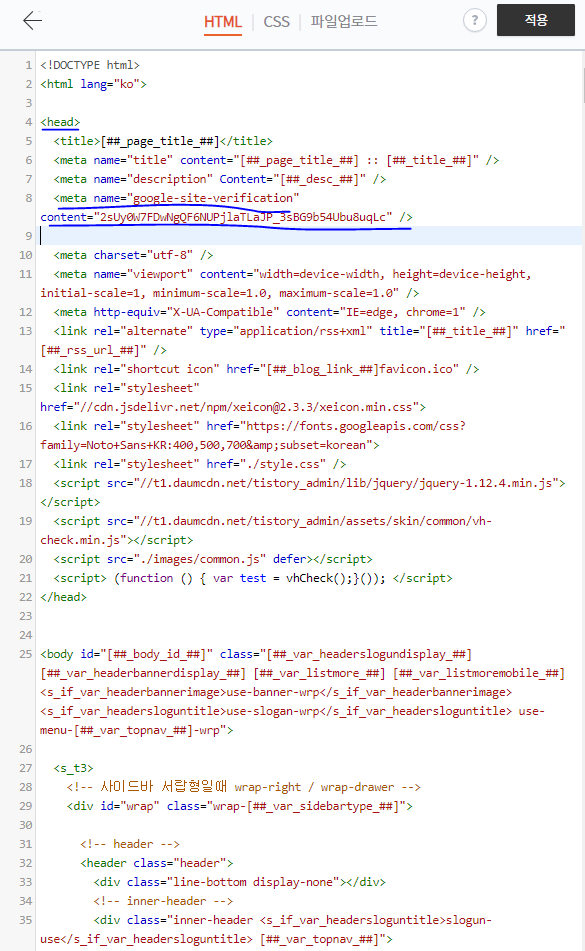 3. 블로그에 자신을 증명하기 위해 HTML 태그 삽입