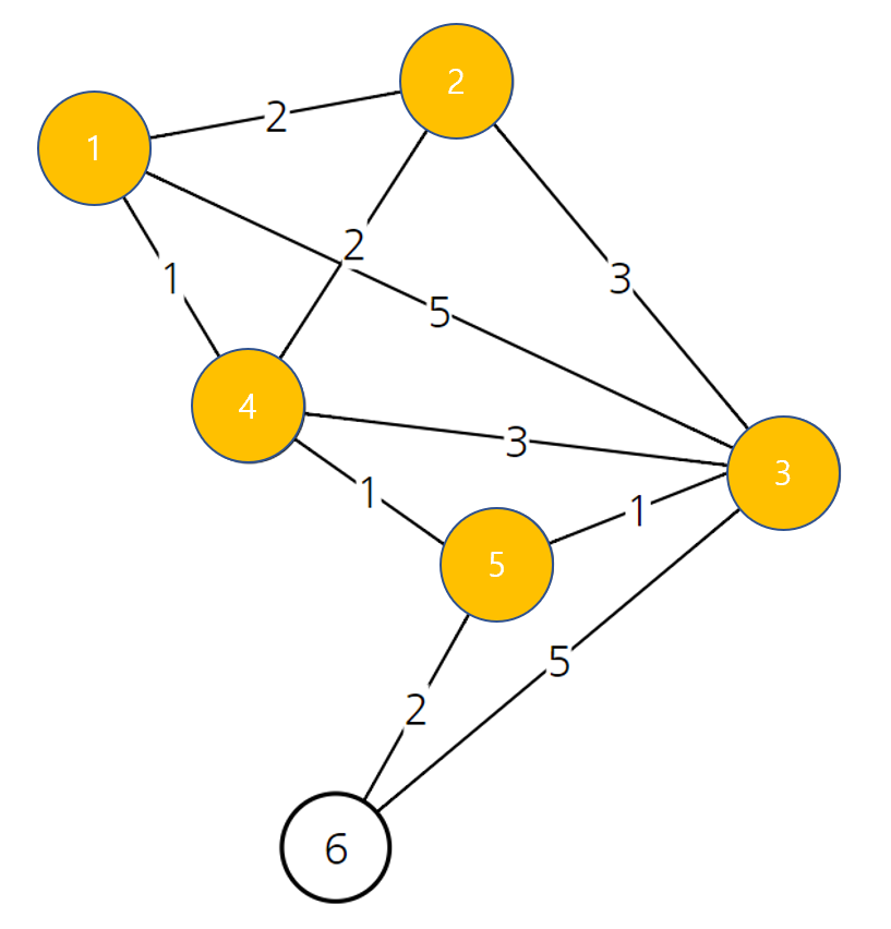 | 노드 번호 | 1 | 2 | 3 | 4 | 5 | 6 |