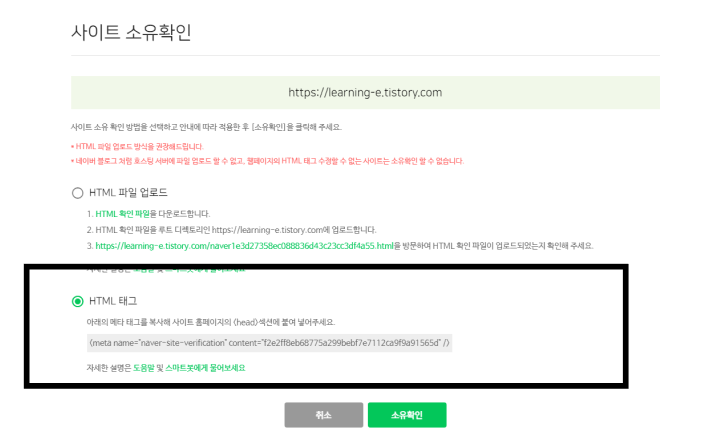 4. 사이트 소유 확인 !